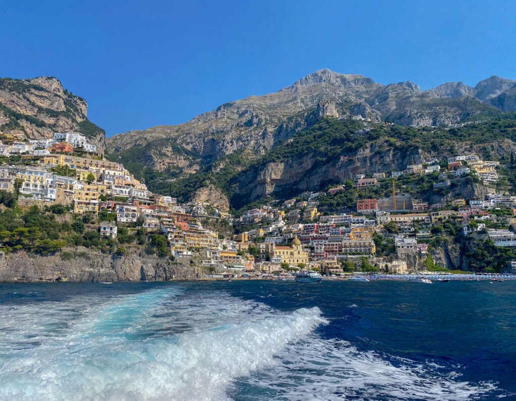 Guests return to Positano by high-speed ferry in the evening.